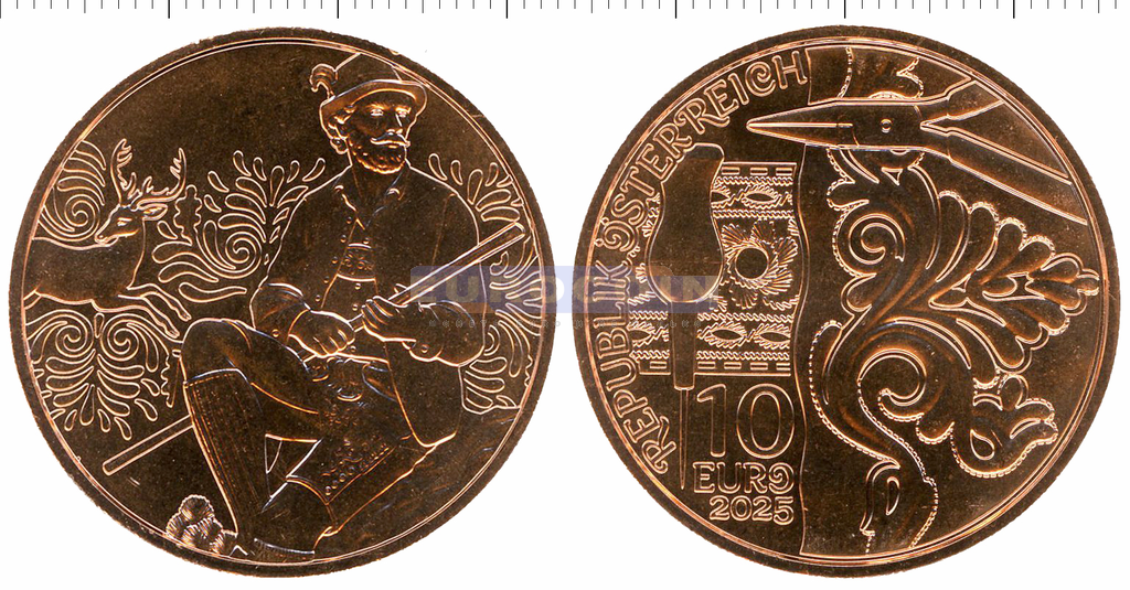Австрия 10 евро 2025, Брецель - тирольские кожаные штаны - вторая монета из серии «Национальная одежда Австрии»
