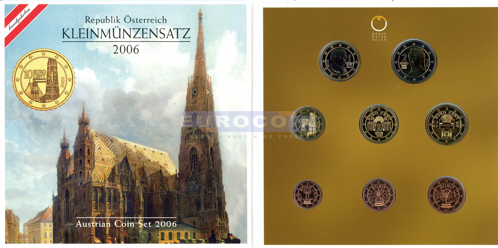 Австрия, официальный годовой набор евро 2006 BU (8 монет)