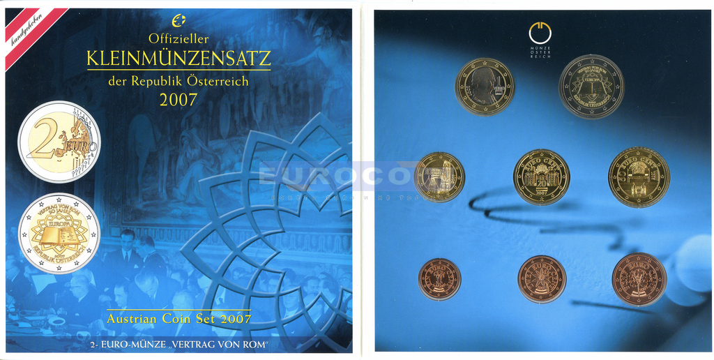 Австрия, официальный годовой набор евро 2007 BU (8 монет)