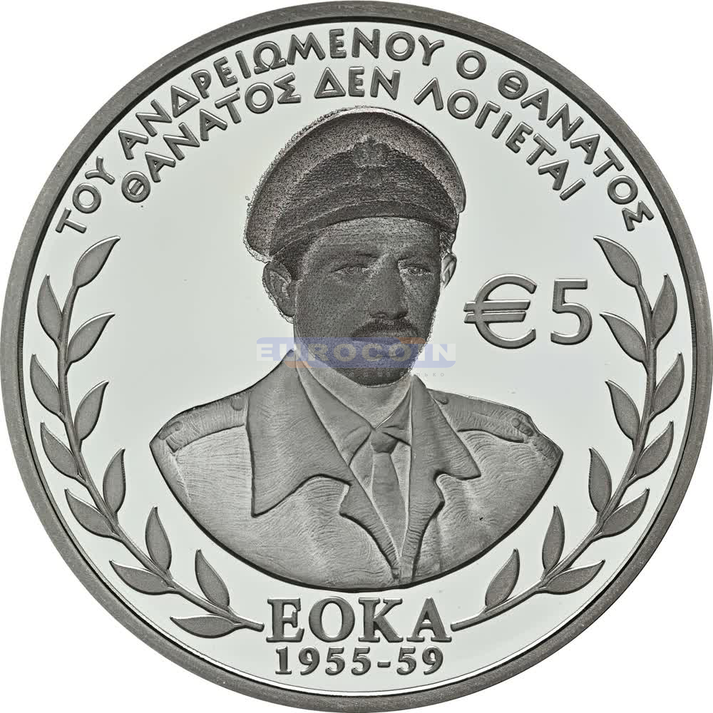 Кипр 5 евро 2025, 70 лет со дня организации ЭОКА - национальной орнаеизвции кипрских бойцов