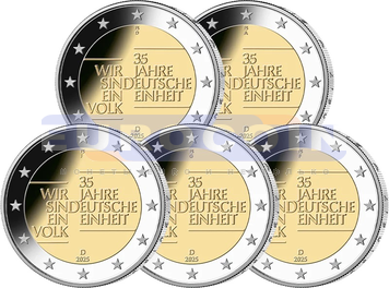 Германия 2 евро 2025, 35-летие объединения Германии, все монетные дворы (A,D,F,G,J)