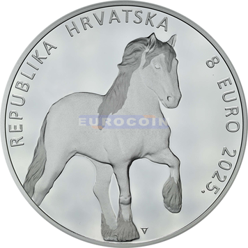 Хорватия 8 Евро 2025, Хорватская хладнокровная лошадь - это порода, адаптированная к условиям пастбищ в Хорватии, известная своим спокойным нравом, силой и выносливостью.