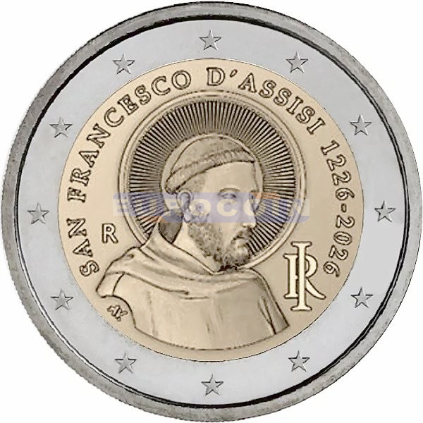 Италия 2 евро 2026, 800 лет со дня смерти Франциска Ассизского
