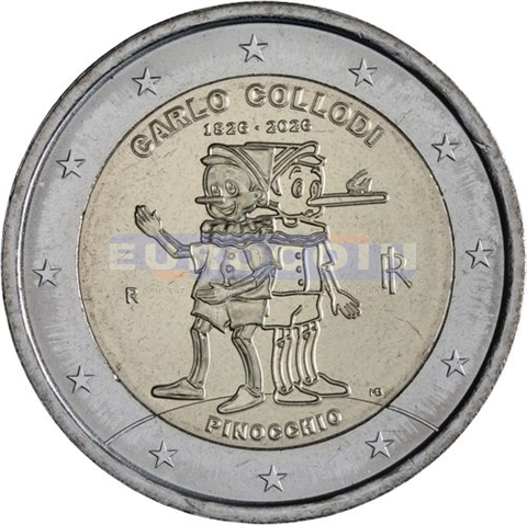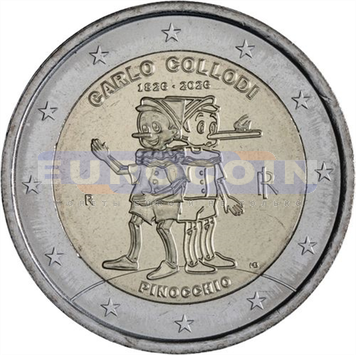 Италия 2 евро 2026, 200 лет со дня рождения Карло Коллоди - итальянский писатель и журналист, известный прежде всего своей знаменитой детской сказкой Пиноккио.