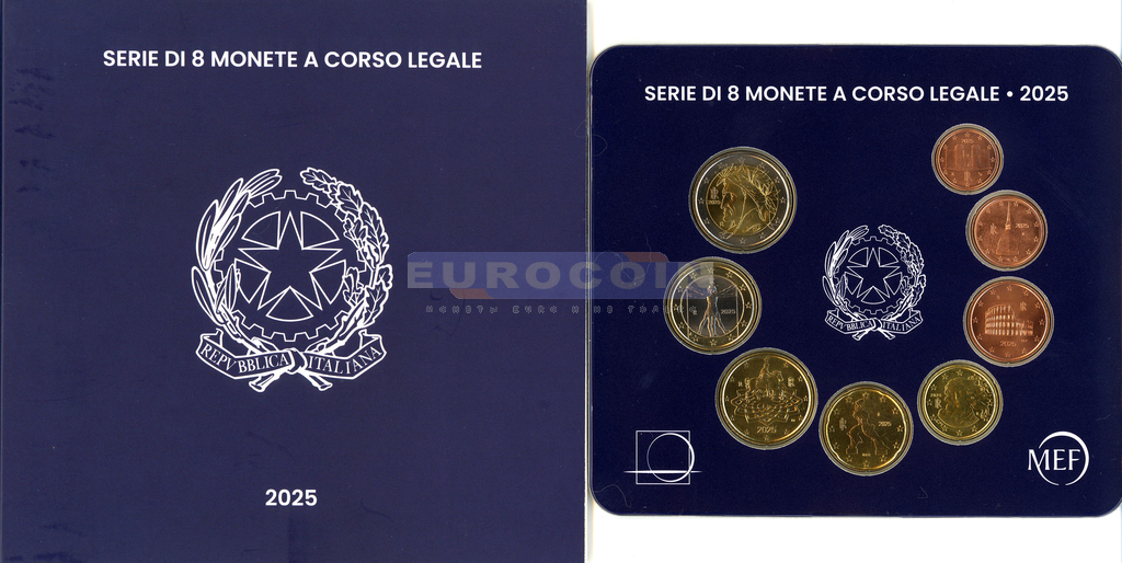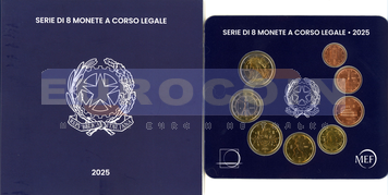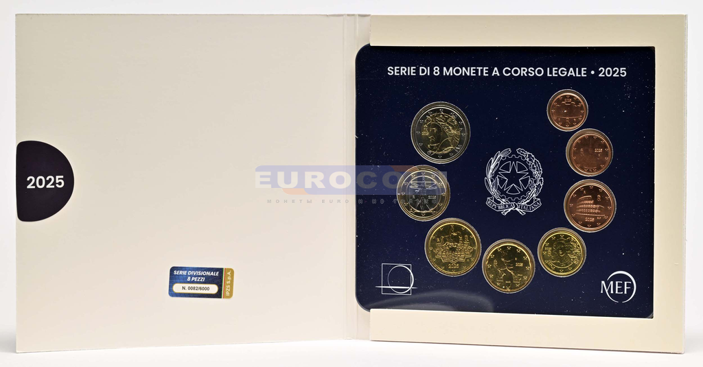 Италия, набор евро 2025 BU (8 монет) - 1 цент - 2 евро