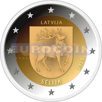 Латвия 2 евро 2025, Селия - монета из серии, регионы Латвии