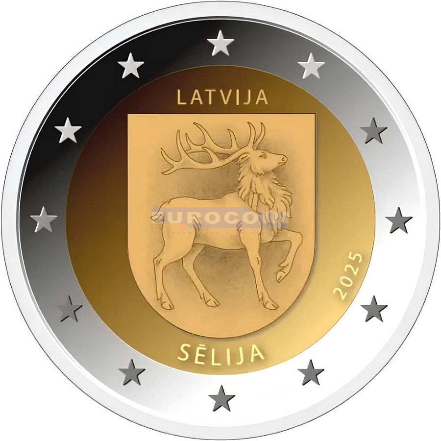 Латвия 2 евро 2025, Селия - монета из серии, регионы Латвии