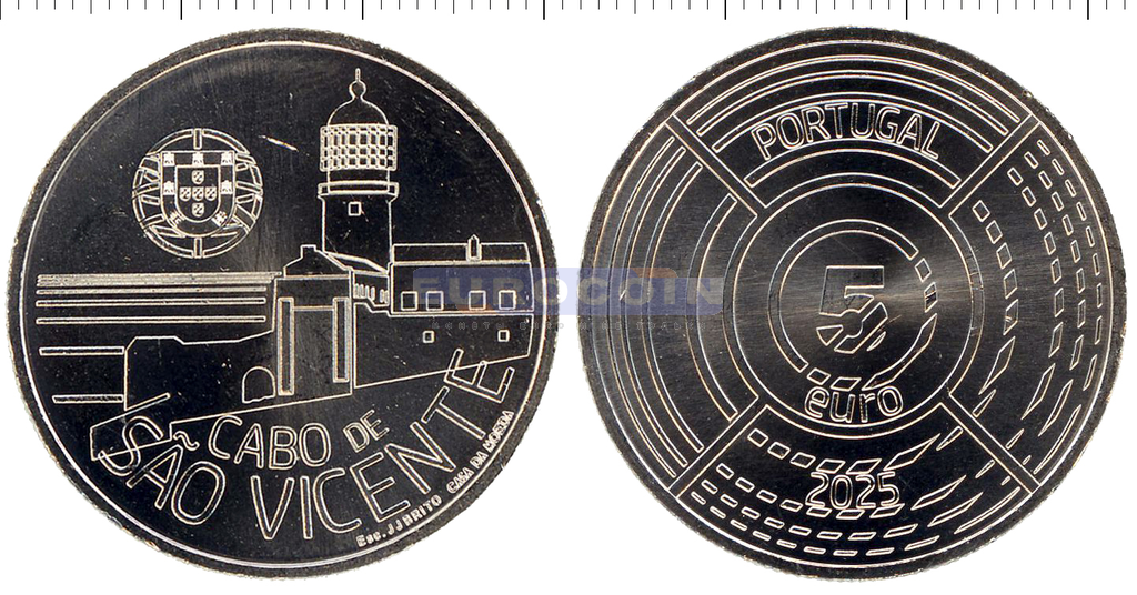 Португалия 5 евро 2025, Кабо-де-Сан-Висенте — маяки Португалии