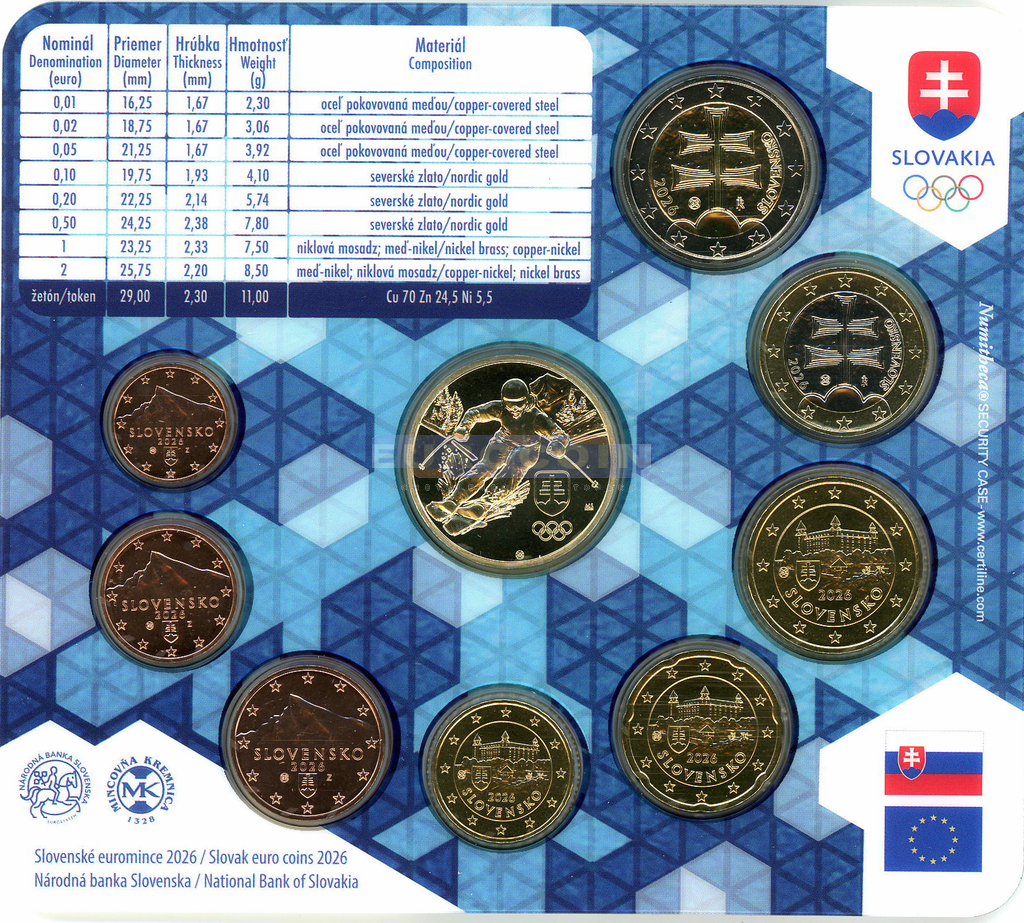 Словакия, официальный годовой набор 2026 Олимпиада в Милане - Кортине BU (8 монет)
