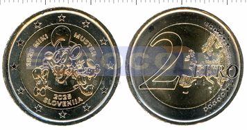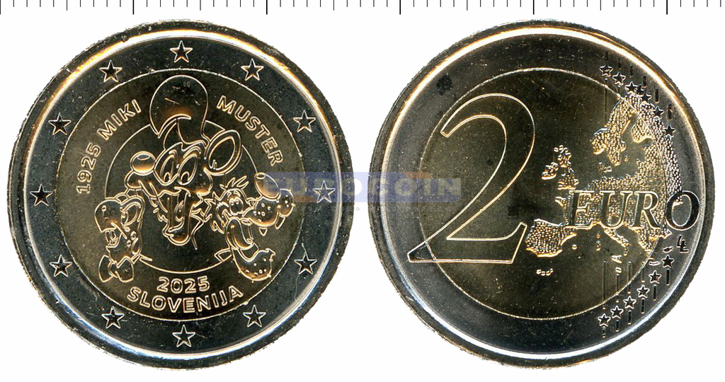 Словения 2 евро 2025, 100 лет со дня рождения Мики Мустера
