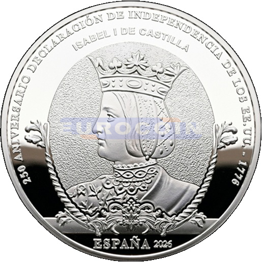 Испания 10 евро 2026, Изабелла I Кастильская - монета из серии «250 лет провозглашения независимости Соединенных Штатов»