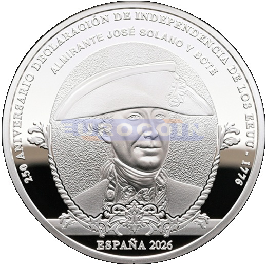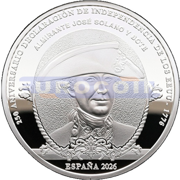 Испания 10 евро 2026, Хосе де Солано-и-Боте - испанский офицер флота и колониальный администратор - монета из серии «250 лет провозглашения независимости Соединенных Штатов»